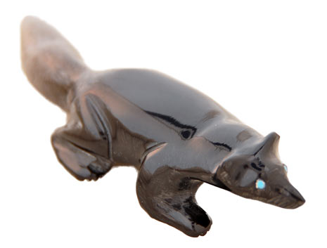"Zuni Badger Fetish from Onyx with Turquoise Eyes"