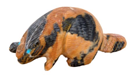 "Zuni Beaver Fetish from Spotted Leopard Stone from Arizona with Turquoise Eyes"