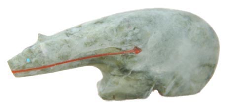 "Zuni Bear Fetish from Serpentine with Coral Heartline"